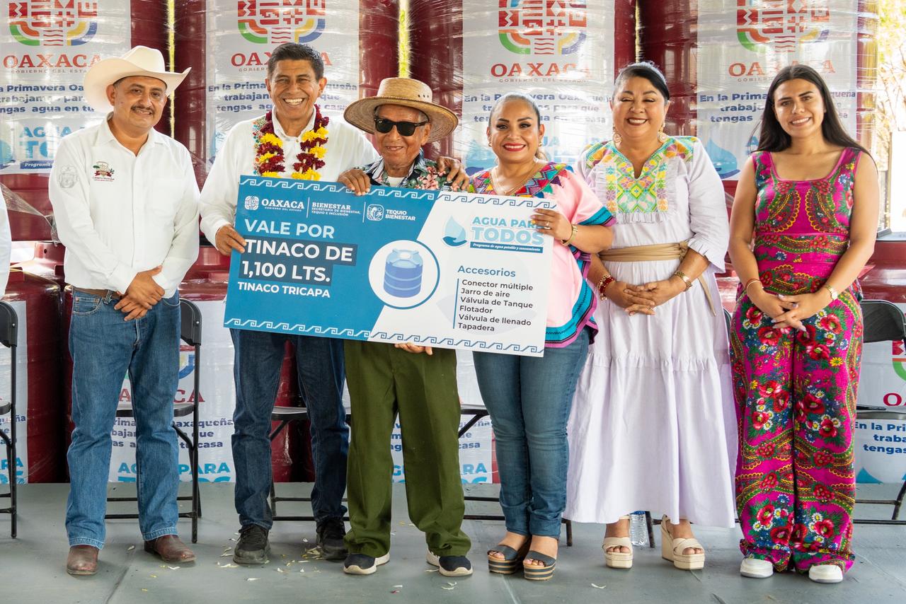 El gobernador de Oaxaca, Salomón Jara Cruz, entregó 500 tinacos de 1,100 litros del programa “Agua para Todas y Todos” en San Pedro Pochutla, para que sus habitantes puedan almacenar el vital líquido durante la temporada de estiaje.
