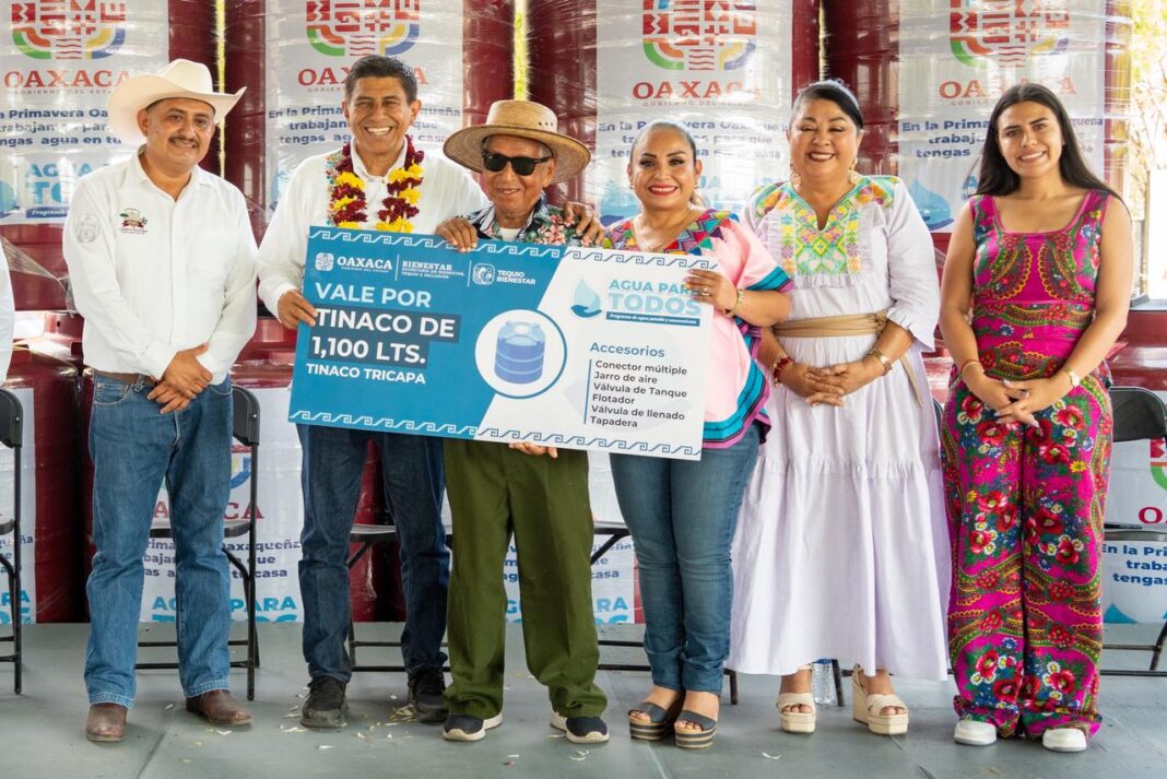 El gobernador de Oaxaca, Salomón Jara Cruz, entregó 500 tinacos de 1,100 litros del programa “Agua para Todas y Todos” en San Pedro Pochutla, para que sus habitantes puedan almacenar el vital líquido durante la temporada de estiaje.