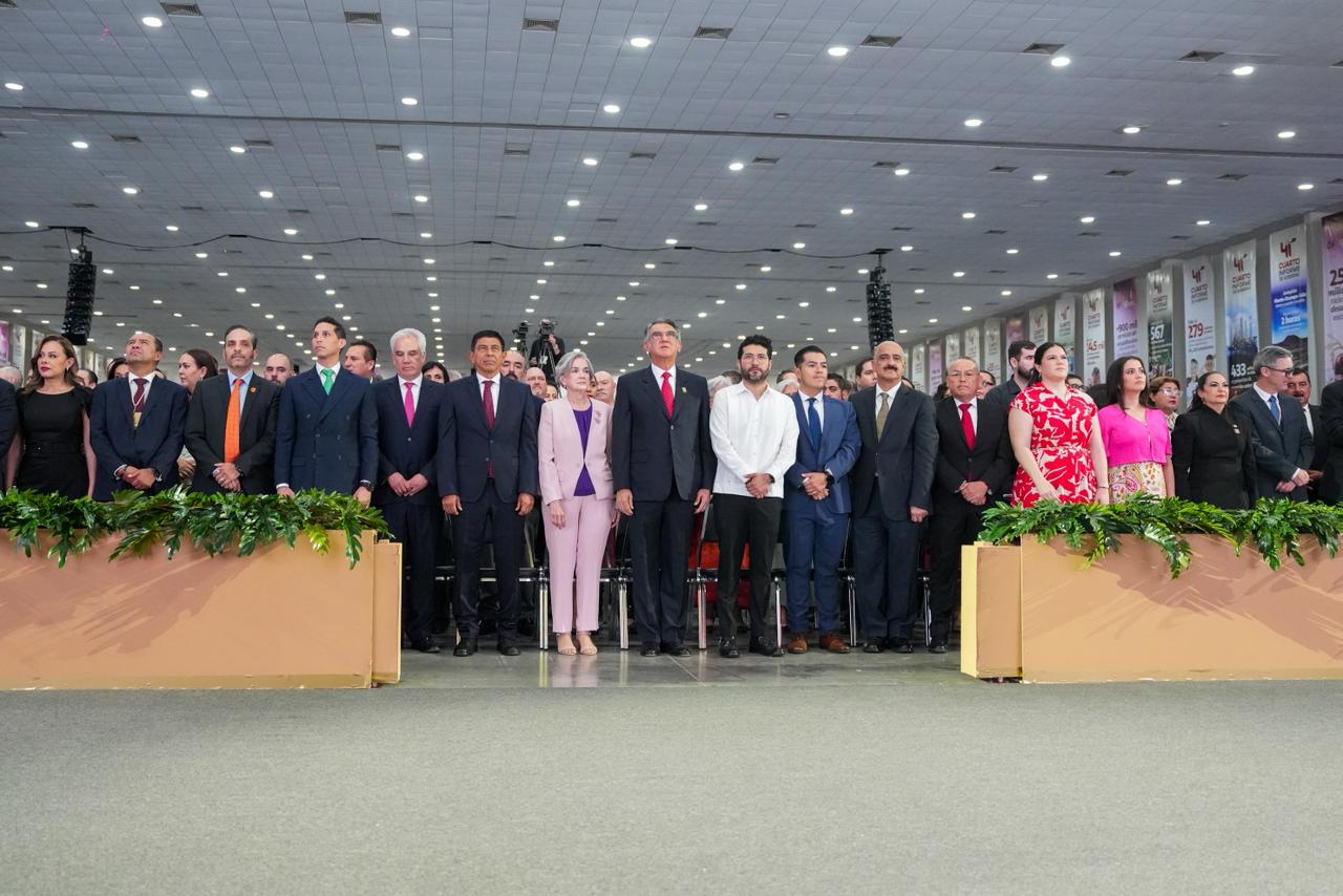 Junto con representantes de los tres niveles de Gobierno, el Mandatario oaxaqueño escuchó el mensaje de Villarreal Anaya, quien realizó un recuento de las acciones y metas alcanzadas en su cuarto año de gestión.