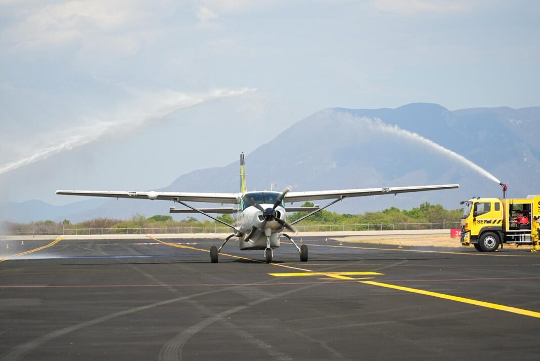 La Secretaría de Turismo (Sectur Oaxaca), representantes de la aerolínea Fly Aerus y autoridades municipales recibieron este lunes el primer vuelo de la nueva ruta que enlaza a este municipio del Istmo de Tehuantepec con el Aeropuerto Internacional Felipe Ángeles (AIFA), ubicado en Ciudad de México.