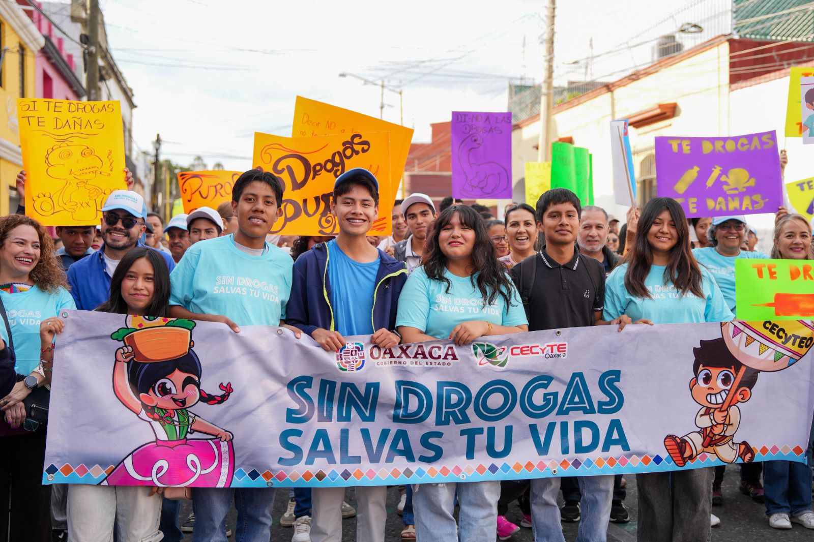 En el marco del Circuito Nacional de Festivales por la Paz, el gobernador Salomón Jara Cruz encabezó el Festival de la Primavera con la primera Calenda “Sin Drogas Salvas tu vida”, que llenó de color, música y esperanza las calles desde el Parque Madero hasta la Plaza de la Danza en la capital oaxaqueña.