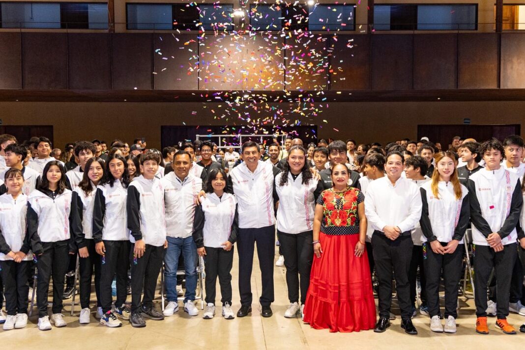 Durante el abanderamiento de la Delegación Oaxaqueña, el gobernador Salomón Jara Cruz pidió a las y los deportistas competir con pasión y honor, a no rendirse y representar con orgullo a su tierra.